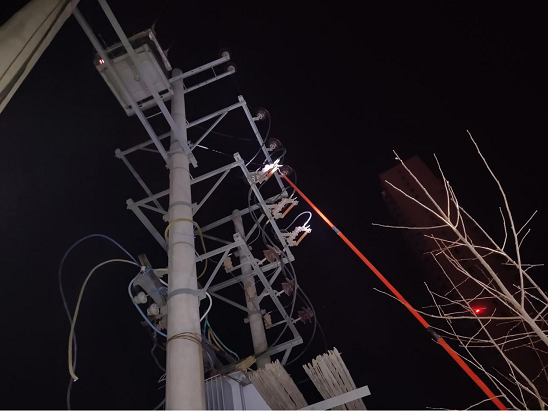 到達(dá)現(xiàn)場(chǎng)后,馬工邊聽現(xiàn)場(chǎng)電工說明情況,邊勘察現(xiàn)場(chǎng),對(duì)柱上變壓器的跌落保險(xiǎn)進(jìn)行檢查,確認(rèn)安裝位置。